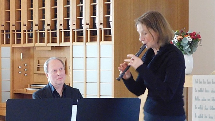 Mit Susanne Hochscheid und Niclas Floer hatten wir zwei hochkarätige Musiker:innen in der Wildstraße zu Gast. Auf unterschiedlichen Blockflöten spielte Hochscheid Originalkompositionen von Hildegard von Bingen, Barbara Strozzi, Anna Amalie von Preussen, Clara Schumann virtuos und hochemotional. Dazu nahmen die alternierenden Stücke von Niclas Floer (Epiano) jeweils Bezug und tauchten musikalische Elemente in ein modal jazziges Gewand - hervorragende Kompositionen zwischen den Stilen... Der sehr langanhaltende Beifall veranlasste zu einer coolen Zugabe: Hey Pipi Langstrumpf mit Flöte und Klavier war am Ende noch ein absolut hörenswertes i-Tüpfelchen.
